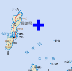 災害発生場所 十字の位置と言われている * 右下沖島は検証地図上右下の小島です。