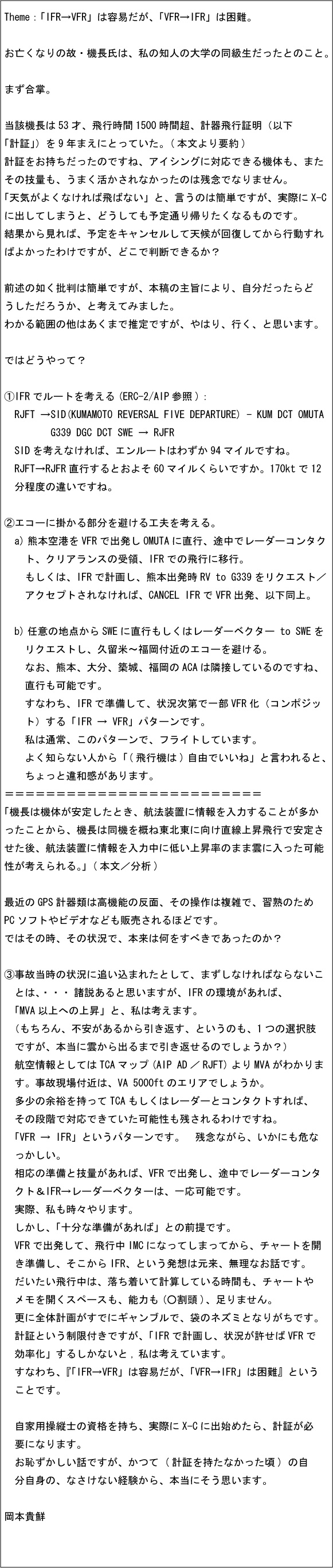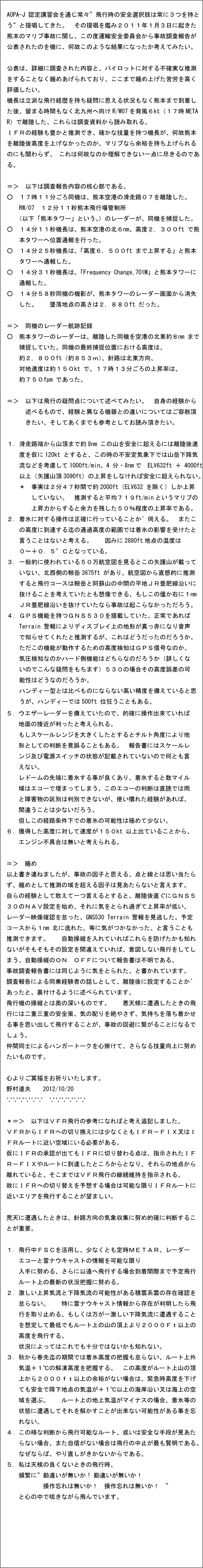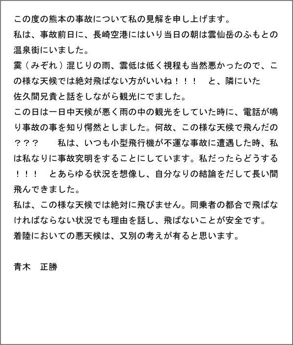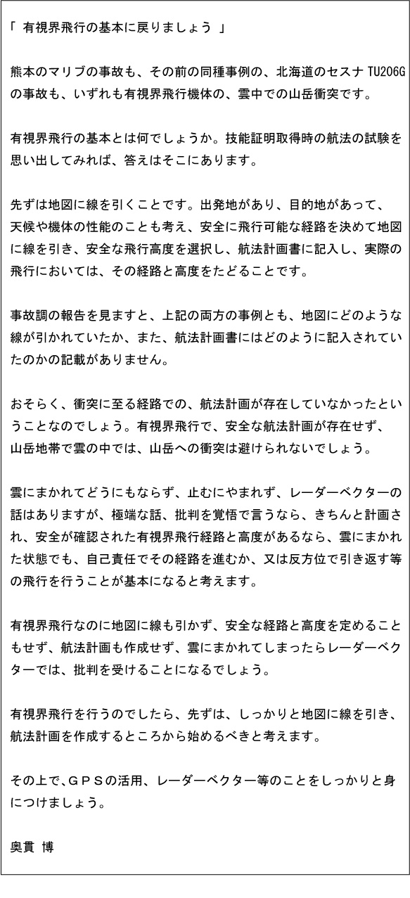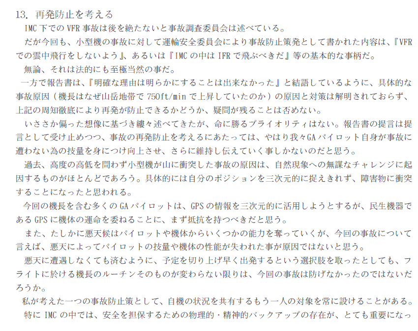 これを機会にGAの安全飛行の教訓を得る必要があると考え “私はこう考える” と題する意見を会員から募りました。