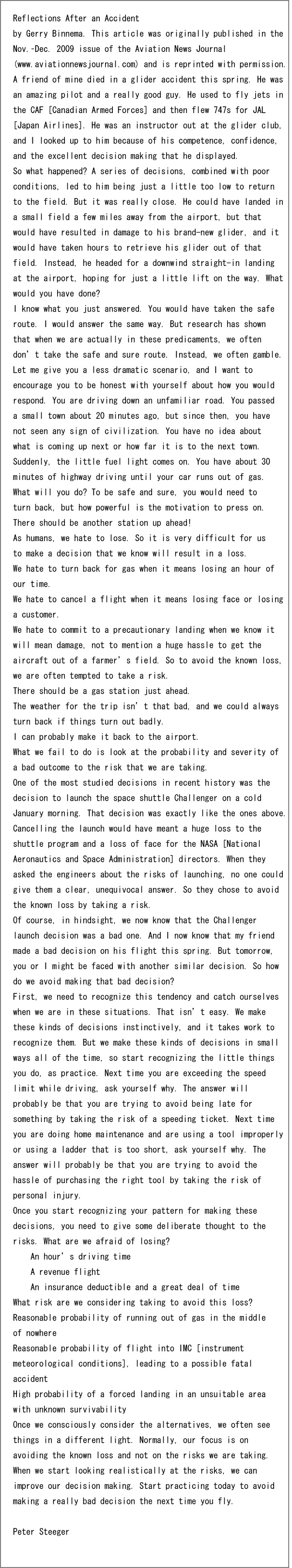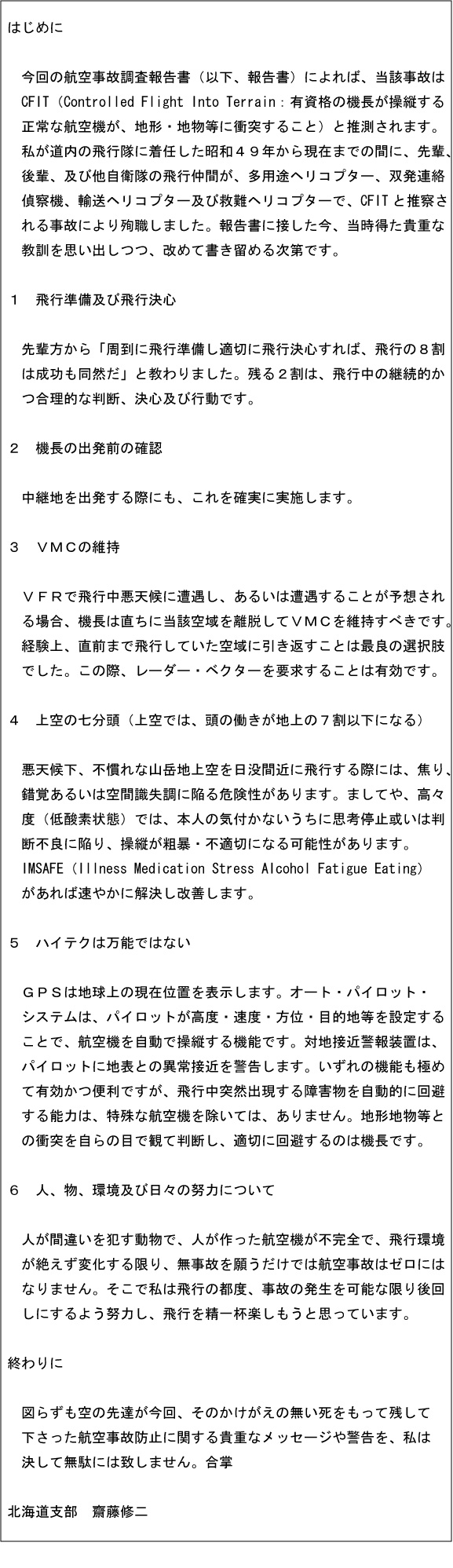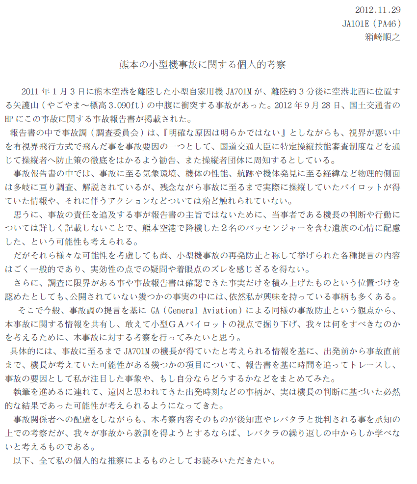これを機会にGAの安全飛行の教訓を得る必要があると考え “私はこう考える” と題する意見を会員から募りました。