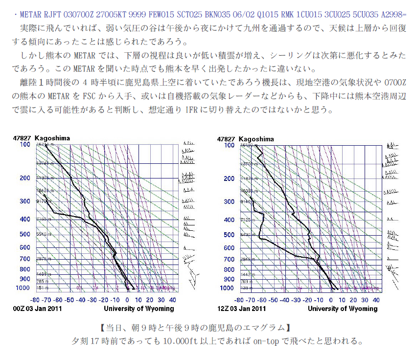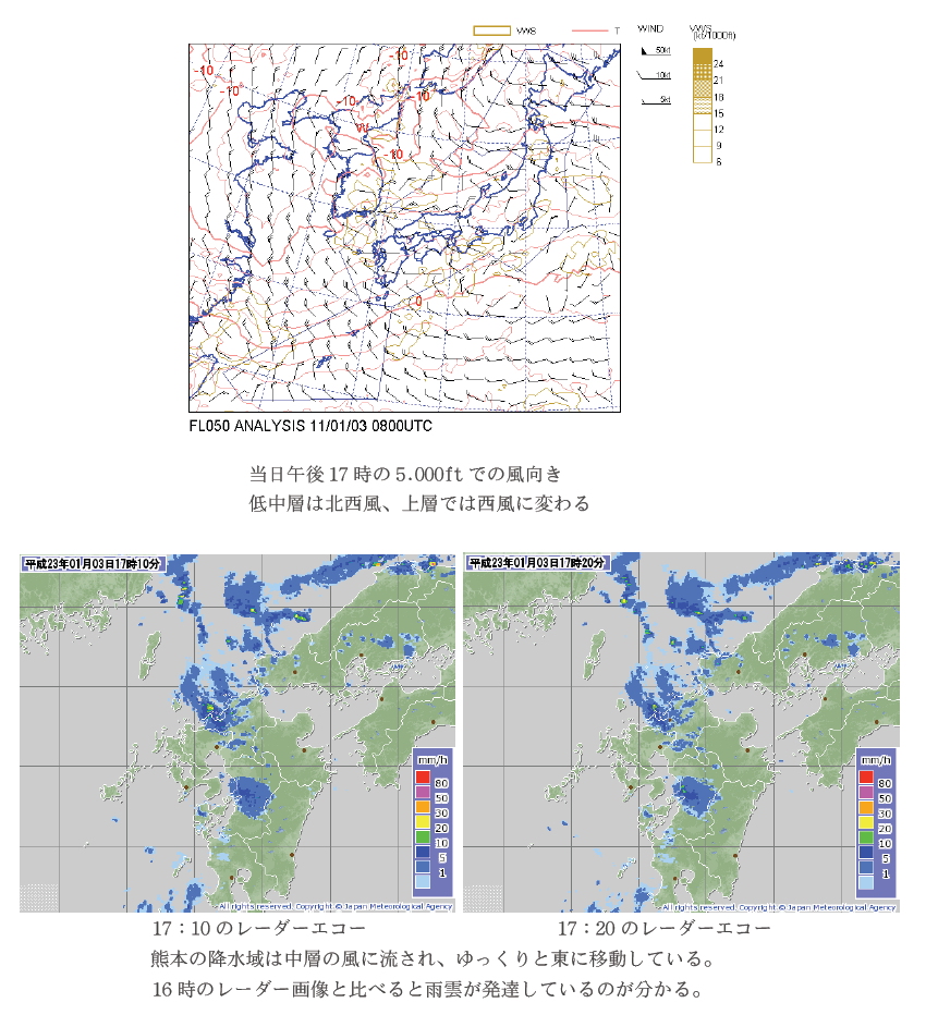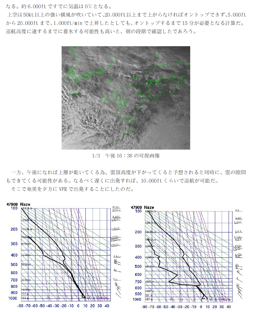 飛行中可能な限り、管制・通信機関へコンタクトして飛行する事が、気象急変を知る手段として最も効果的である。