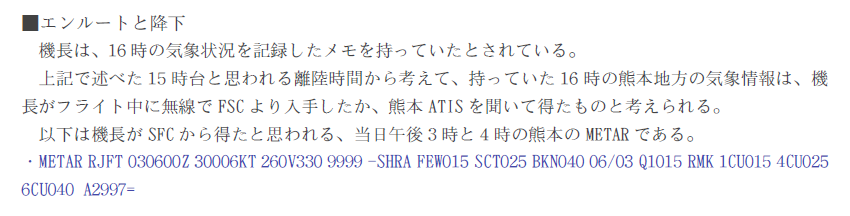 正確な発生位置は含まれていない。 METARには大凡の位置が記載されていたと思います。