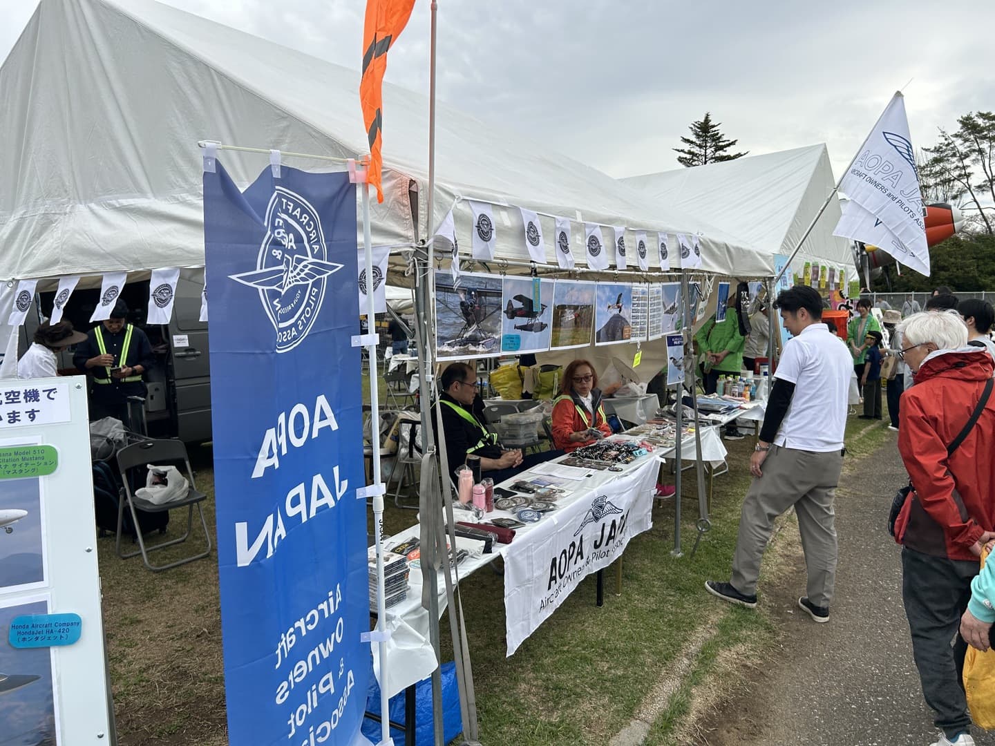特にAOPAブースは会員参加者により個人負担で準備された展示物等がブースに立ち止まる人を引き付け、極め付きは13時30分から開始された佐久間哲也理事によるHONDA JETボランティアによる上空デモ飛行には、全入場者が空を仰ぎ見る、壮観な会場風景でした。